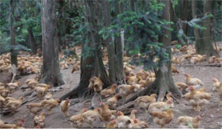 图中为富乐村大棚鸡舍的养殖成鸡(摄影/黄青龙)