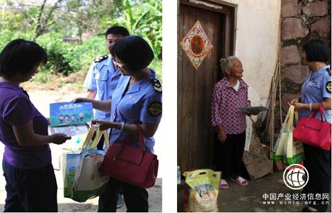 工作人员还分组走进柘陂村多名贫困户的家中,上门派发各类宣传资料,面对面、心贴心地普及饮食用药安全常识,并送上优质大米、食用油等生活物资。