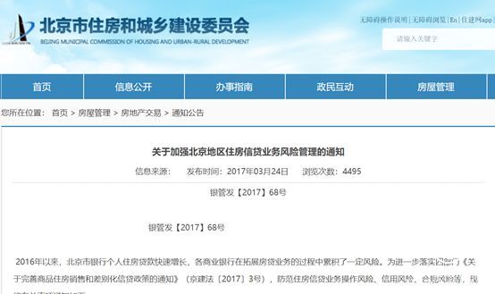 一周之后的3月24日,央行营管部、北京银监局、北京市住建委和北京住房公积金管理中心联合发布《关于加强北京地区住房信贷业务风险管理的通知》。