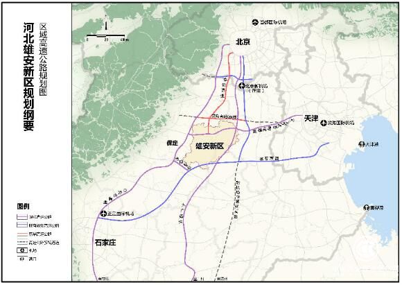 实现新区高效融入“轨道上的京津冀”,20分钟到北京新机场,30分钟到北京、天津,60分钟到石家庄。