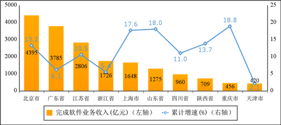 主要软件大省业务收入占比小幅下降。一季度,软件业务收入居前5名的省份中,北京市、广东省、江苏省、浙江省、上海市软件收入分别为4395亿元、3785亿元、2806亿元、1726亿元和1648亿元,分别增长13.2%、6.1%、10.5%、5.4%和17.6%,五省(市)合计软件业务收入14360亿元,占全国比重为71.6%,占比较去年同期回落0.8个百分点。