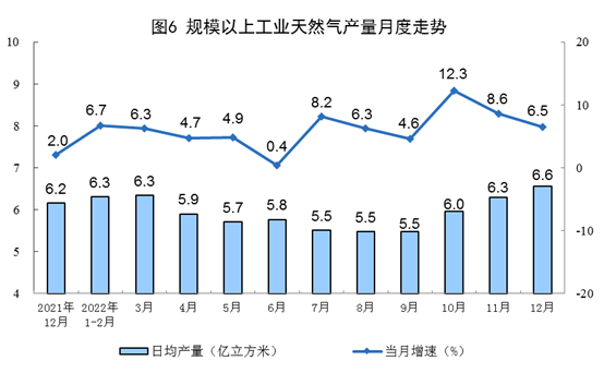 12月份,规模以上工业原煤、原油、天然气和电力生产同比保持增长。与11月份相比,原煤、原油、天然气增速有所放缓,电力增速加快。