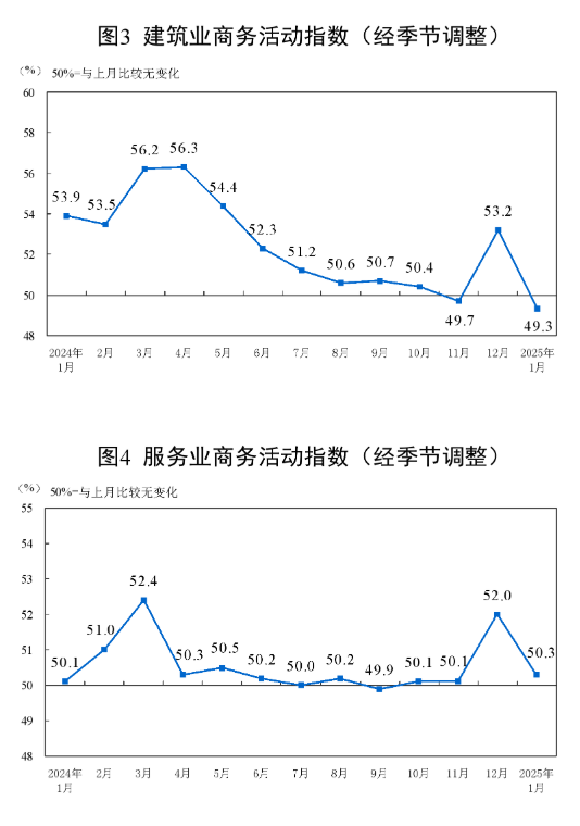 分行业看,建筑业商务活动指数为49.3%,比上月下降3.9个百分点;服务业商务活动指数为50.3%,比上月下降1.7个百分点。从行业看,航空运输、邮政、电信广播电视及卫星传输服务、货币金融服务等行业商务活动指数均位于55.0%以上较高景气区间;居民服务、文化体育娱乐等行业商务活动指数均低于临界点。