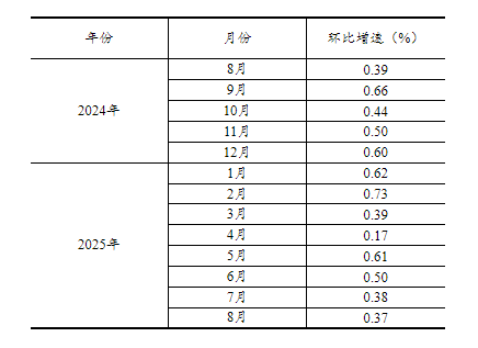 根据季节调整模型自动修正结果,对2024年8月至2025年7月份规模以上工业增加值环比增速进行修订。修订结果及2025年8月份环比数据如下: