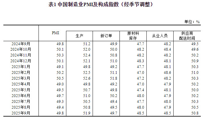 9月份,制造业采购经理指数(PMI)为49.8%,比上月上升0.4个百分点,制造业景气水平继续改善。
