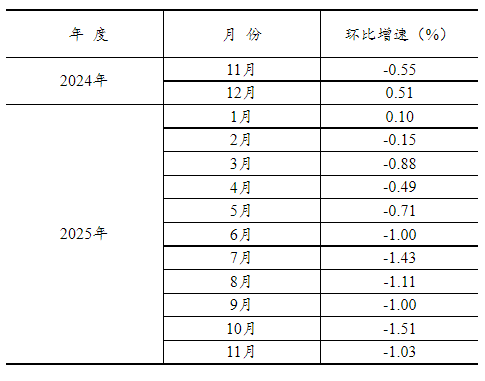 根据季节调整模型自动修正结果,对2024年11月份以来的固定资产投资(不含农户)环比增速进行修订。修订结果及2025年11月份环比数据如下: