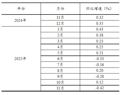 根据季节调整模型自动修正的结果,对2024年11月份以来的社会消费品零售总额环比增速进行修订。修订结果及2025年11月份环比数据如下: