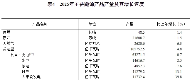 初步核算,全年一次能源生产总量51.3亿吨标准煤,比上年增长3.6%。