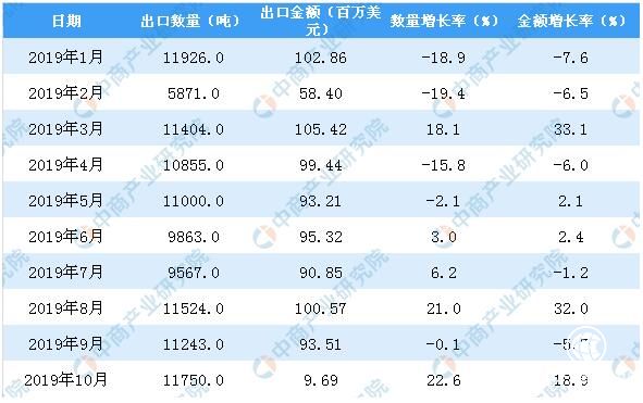 从金额方面来看,2019年11月中国中药材及中式成药出口金额为119.2百万美元,同比增长18.8%。