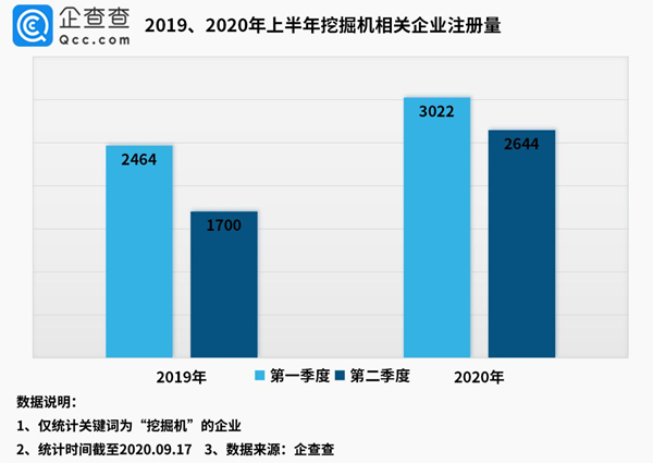 随着国内疫情趋向稳定,基建新项目集中开工等推动工程机械需求量大增,企查查数据显示,截止到2020年9月,我国在业、存续的挖掘机相关企业数量共5万家。