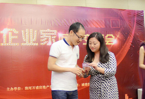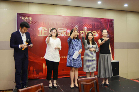 晚宴还设了抽奖环节,万盛集团总经理张瑞敏为获得一等奖的嘉宾颁发奖品