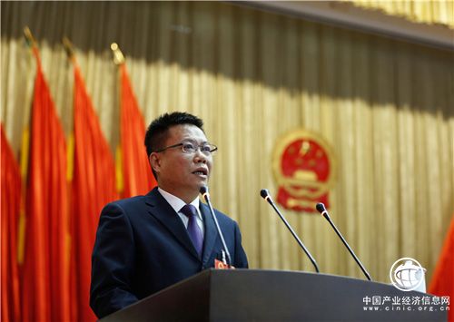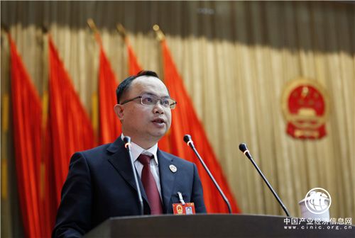 陵水黎族自治县代县长李锋代表县人民政府向大会作工作报告(陈思国 摄)