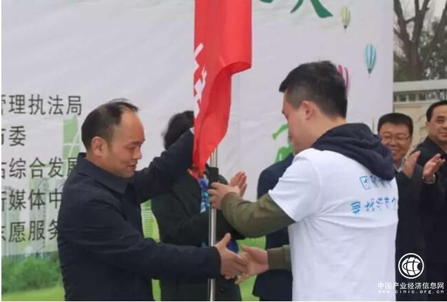 (铜川市副市长刘西林向青年志愿者队伍授旗)