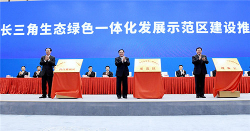11月1日,两省一市主要领导为长三角生态绿色一体化发展示范区揭牌(陈正宝摄)