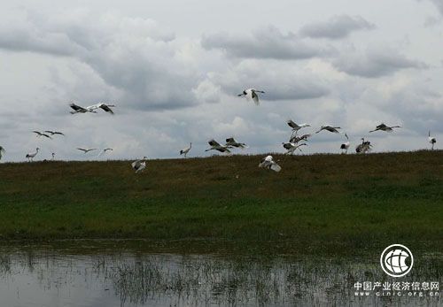 齐齐哈尔旅游资源丰富:扎龙保护区中振翅飞翔的丹顶鹤