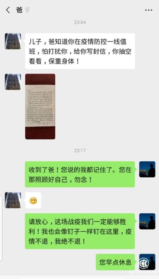 当前疫情依然严峻,国难面前,要坚决服从党和国家的决定,听从公司安排。周南高速是服务豫西南疫情防控的干道,你又是这条线上的收费员,要像钉子一样坚守岗位!在自己平凡的岗位上用担当和深情,为抗击疫情而努力!我也相信,在这场没有硝烟的狙击战中,你和你的同事们会为国家,为周南高速再立新功!爸预祝你们早日吹响胜利的号角!不要挂念家人。