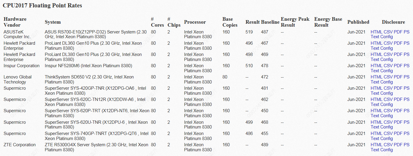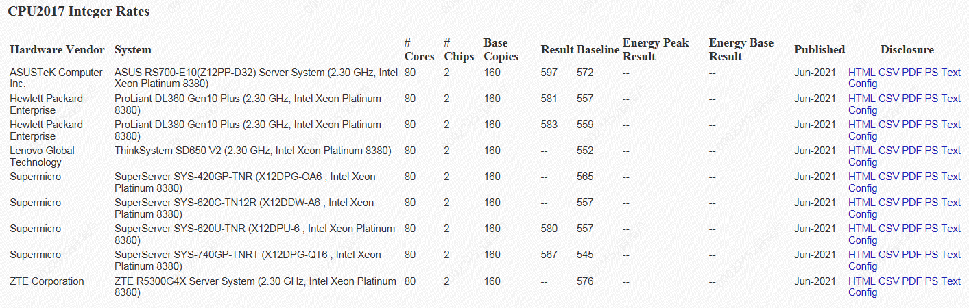 SPEC测试结果是全球企业级客户进行服务器产品、方案选型的主要技术依据,参与SPEC测试的企业包含全球知名服务器厂家。此次SPEC CPU测试成绩的刷新又一次证明了中兴通讯新一代服务器R5300 G4X具有业界领先的性能。