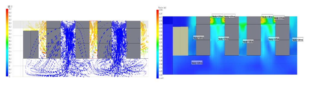 图3 机房气流组织仿真(左) 机房温度场云图(右)