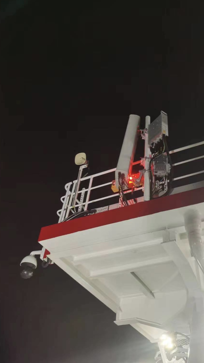 经过一个月的日夜奋战,宁波移动网络突击队克服海上风速高、涌浪大、海流急等困难,于近日完成了首台5G 700M基站的安装。基站高32米,5G信号辐射东北8.1公里、东南10.3公里海域,可覆盖国电二期整个海上风电项目海域,为风电厂施工人员提供高效、稳定的通信保障及服务,也为后续风机工程施工奠定了坚实网络通信基础。
