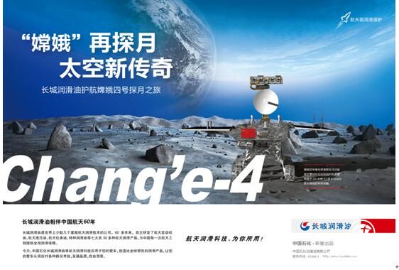 从2007年的“嫦娥一号”到2018年的“嫦娥四号”,短短11年间,我国的探月工程迈出了一个又一个坚实的步伐。中国石化长城润滑油作为中国航天全面战略合作伙伴,一路为我国的探月工程保驾护航。从“嫦娥一号”到“嫦娥四号”,其核心部件均配套长城润滑油自主研发的氟油产品。嫦娥四号的成功发射,标志着长城润滑油再一次通过中国航天的“大考”。六十年服务航天无一例润滑事故,以满分的成绩证明了其中国航天60年“模范生”的身份。