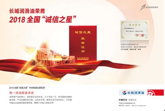 不久前举行的2018“诚信之星”颁奖典礼上,中国石化长城润滑油获得了唯一企业“诚信之星”称号。中宣部、国家发改委、中央电视台共同表彰了长城润滑油服务中国航天60年的历史功绩,点赞长城润滑油是国之重器的“液体芯片”。六十年服务中国航天,坚持自主研发的工匠精神,成就了这一份国家给予的殊荣。