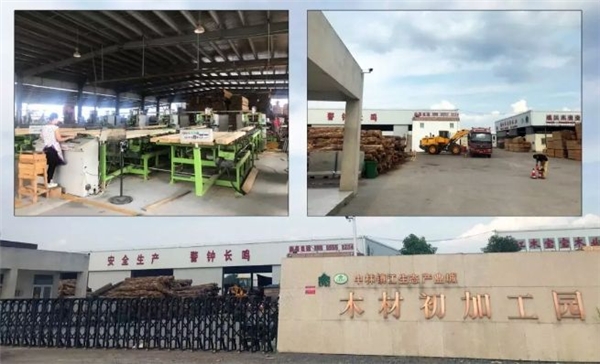木材初加工区一期建设厂房20栋占地200亩,已建成投产,年加工能力70万方,现已入驻企业共计13家,主营建筑木方、包装托盘料、古建材、家具配套小料等;木材初加工二期建设烘干窑120孔,可烘干板材70万方。