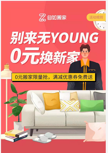 为了方便更多租客轻松搬家,北京自如推出了“别来无YOUNG 0元换新家”活动,租客在2021年3月2日10:00-4月5日24:00期间可以登陆自如APP,在相应的活动界面领取优惠券,享受搬家优惠。自如搬家明码变价、服务至上,受到了广大租客的一直好评。