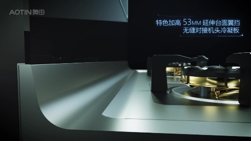 专利潜艇式一体台面延伸加高53mm设计有效规避烟机与灶具缝隙藏污的痛点,一体成型防指纹工艺有效改善厨房油腻环境下灶台的清洁问题,方便打理。