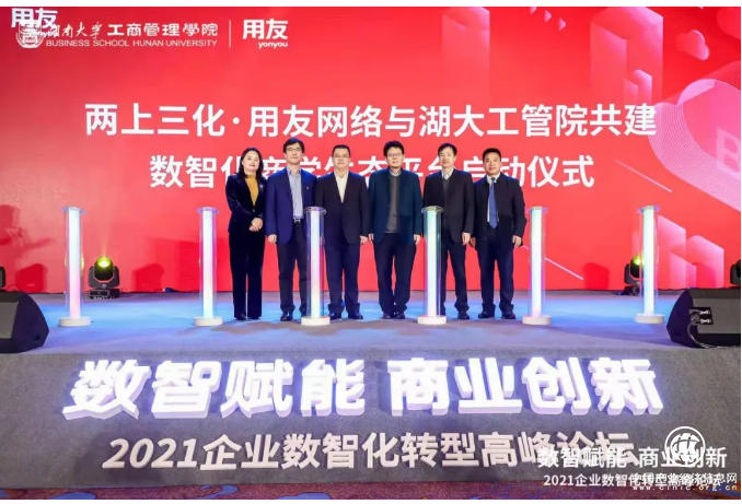 4月8日,以“数智赋能 商业创新”为主题的“2021企业数智化转型高峰论坛”在湖南长沙召开。此次活动由湖南大学工商管理学院与用友网络科技股份有限公司联合主办。旨在通过融合新技术新理念,联合产业新生态,为企业数智赋能,开拓思路、商业创新。帮助更多湖南企业数智化转型,走向商业创新,推动湖南数字经济快速发展!会上,用友网络与湖南大学工商管理学院共建的“数智化商学生态平台”正式发布。同时用友发布《用友产业互联网创新方法论2020》,为企业构建产业互联网指明目标、路径、实践。