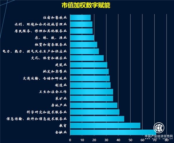 报告显示,按市值加权平均法排在前列的行业主要有金融业、教育业、信息传输业、软件业和信息技术服务业、科学研究业和技术服务业以及房地产业。其中,采用算术平均法计算行业数字赋能时,金融业、信息传输业、教育业、软件业和信息技术服务业依旧排在领先地位。市值加权的行业指数大于算数平均的行业指数说明,龙头股很强,但是其他企业的数字赋能相对落后。