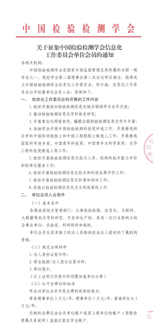 关于征集中国检验检测学会信息化工作委员会单位会员的通知