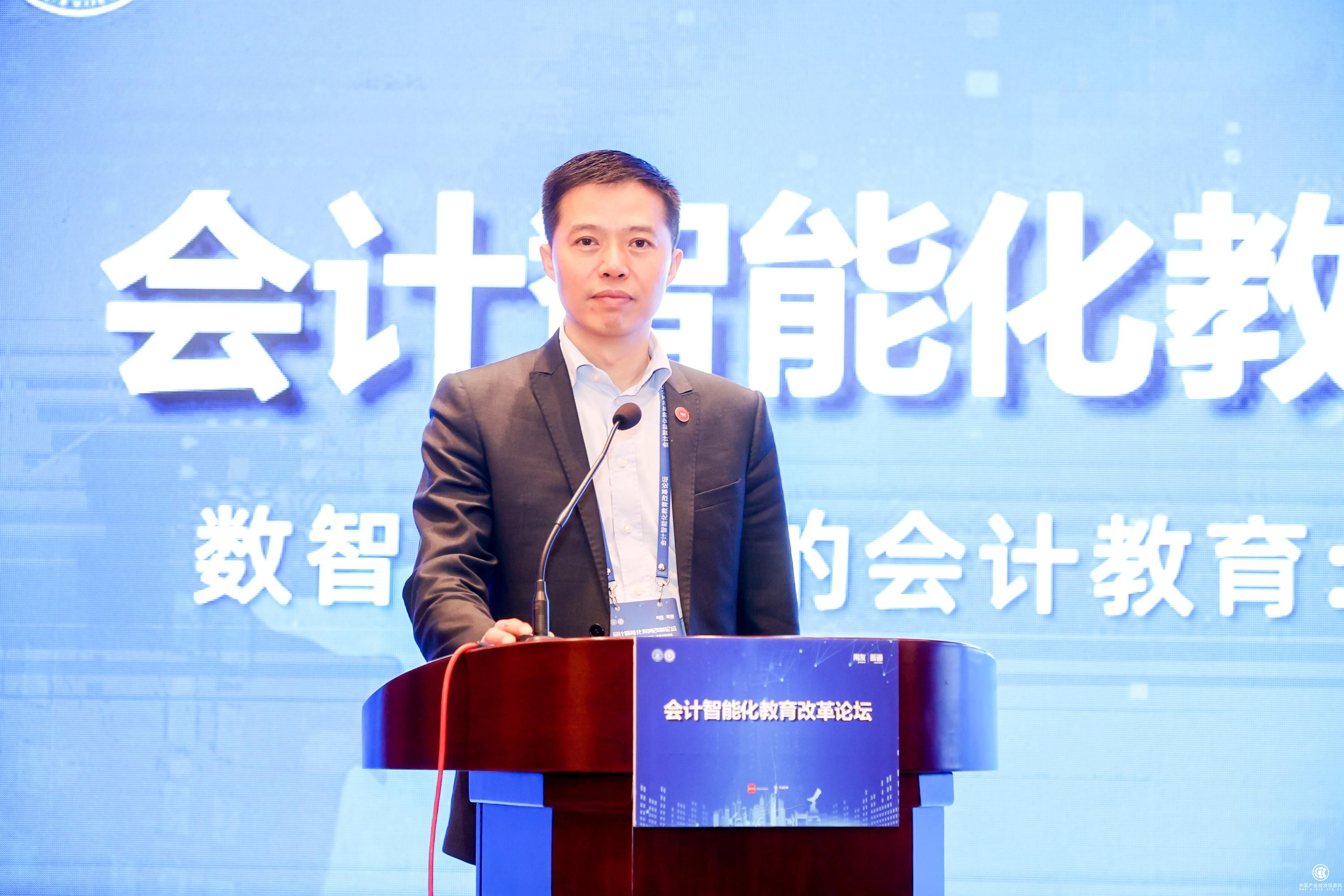 新道科技股份有限公司董事长兼总裁陈强兵在致辞中首先介绍了公司的发展历程,他表示,随着互联网、大数据、云计算等新一代信息技术的发展,公司已经完成了从以财务软件为核心到以企业云服务为核心的迭代升级,迈入了服务企业数智化转型和商业创新的新阶段。服务中国教育事业,科技使能教育是公司的发展使命。未来,公司将进一步深化产教融合,增进校企合作,通过向高校开放智能云服务、行业真实案例、专家资源等方式助力高素质数智化人才培养,为推动中国经济社会会计与财务领域的智能化转型、中国会计教育发展贡献自己的力量。