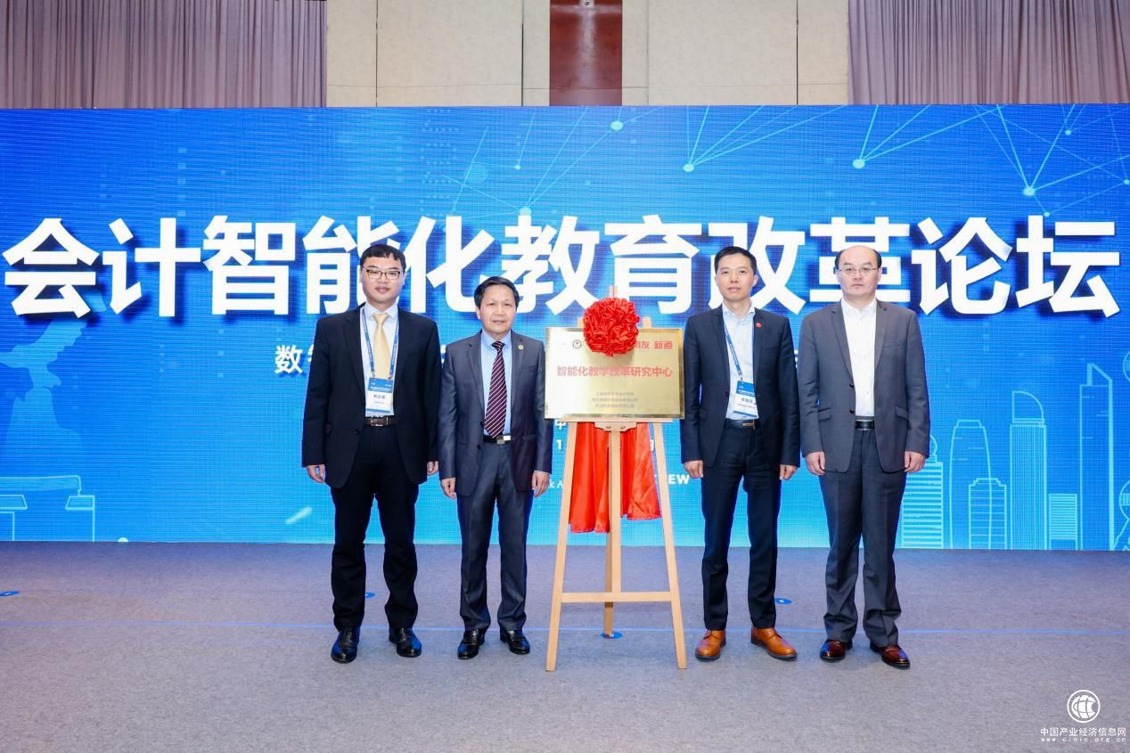 开幕式上同时举行了上海财经大学智能化教学改革研究中心揭牌仪式。上海财经大学副校长陈信元、新道科技股份有限公司董事长兼总裁陈强兵、上海财经大学会计学院院长靳庆鲁、新道科技股份有限公司副总裁宋健为智能化教学改革研究中心揭牌。