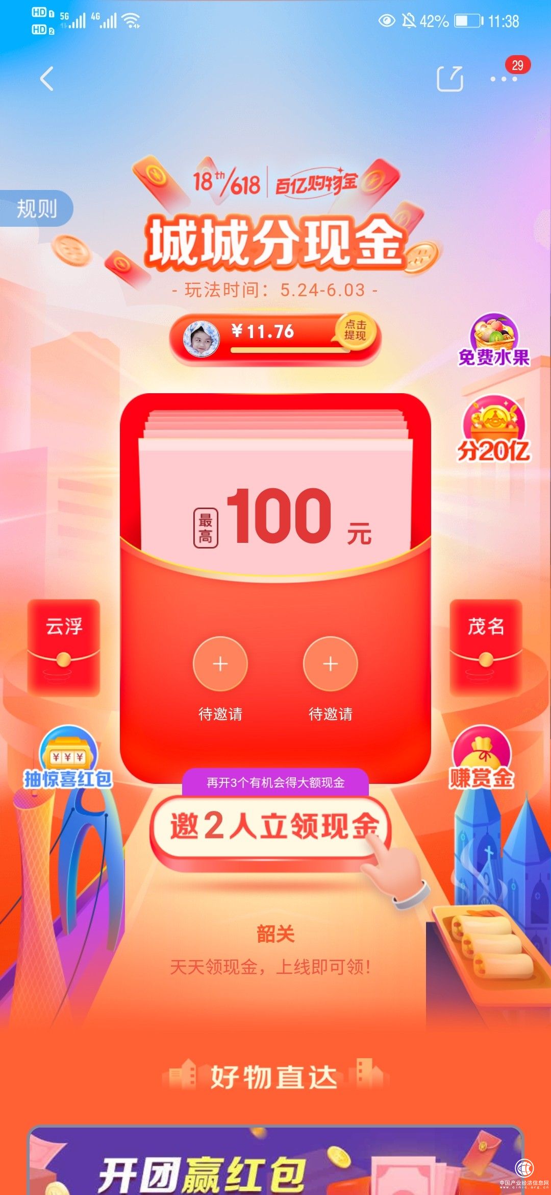 今年京东618城城分现金活动招式升级,全国联动,引发全民狂欢。5月24日-6月03日期间,用户在京东 APP 搜索“分现金”或“城城分现金”就能直接进入活动页面,通过登录或拉好友助力等方式就能简简单单进行金额累计,累计金额达到提现门槛即可提现为微信零钱或兑换无门槛红包,在购物时直接抵减商品金额,真正实现红包当钱花。