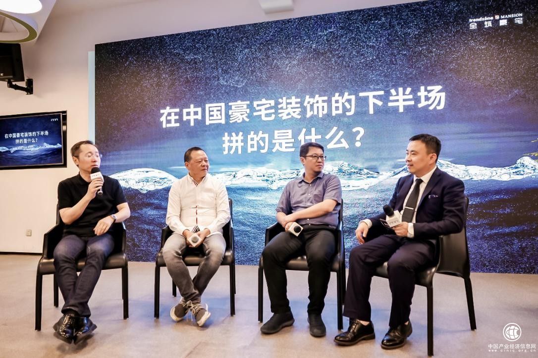 主题论坛环节,全筑股份联合创始人蒋惠霆先生、上海同济建筑室内设计工程有限公司董事长刘沛先生、全筑家居集团豪宅事业部总监孙楷先生、聚向传媒董事长、《美国室内设计》(中文版)出版人赵虎先生共同探讨《在中国豪宅装饰的下半场,拼的是什么?》