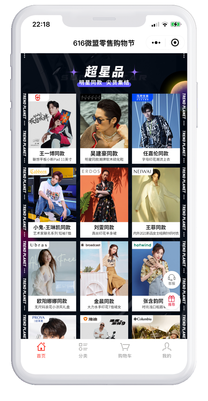 “潮流星球直播夜”作为本次微盟616的重头戏,由郑恺、李晨nic、丁泽仁、李大奔、王以太、颜如晶、冉高鸣组成的明星阵容,将于6月16日18:30起,在微盟视频号直播中轮番登场,分享自己潮流主张的同时,与粉丝即时互动并种草直播间内的品牌潮品。用户观看直播时,点击商品链接即可转跳至品牌小程序商城抢购潮流好礼,享受边看边买的乐趣。而6月16日当天的直播将从早10点一直持续到晚12点,全天候、不间断地为消费者带来超值的潮流好物,丰富的品类矩阵直击不同圈层用户,点燃拔草热情。