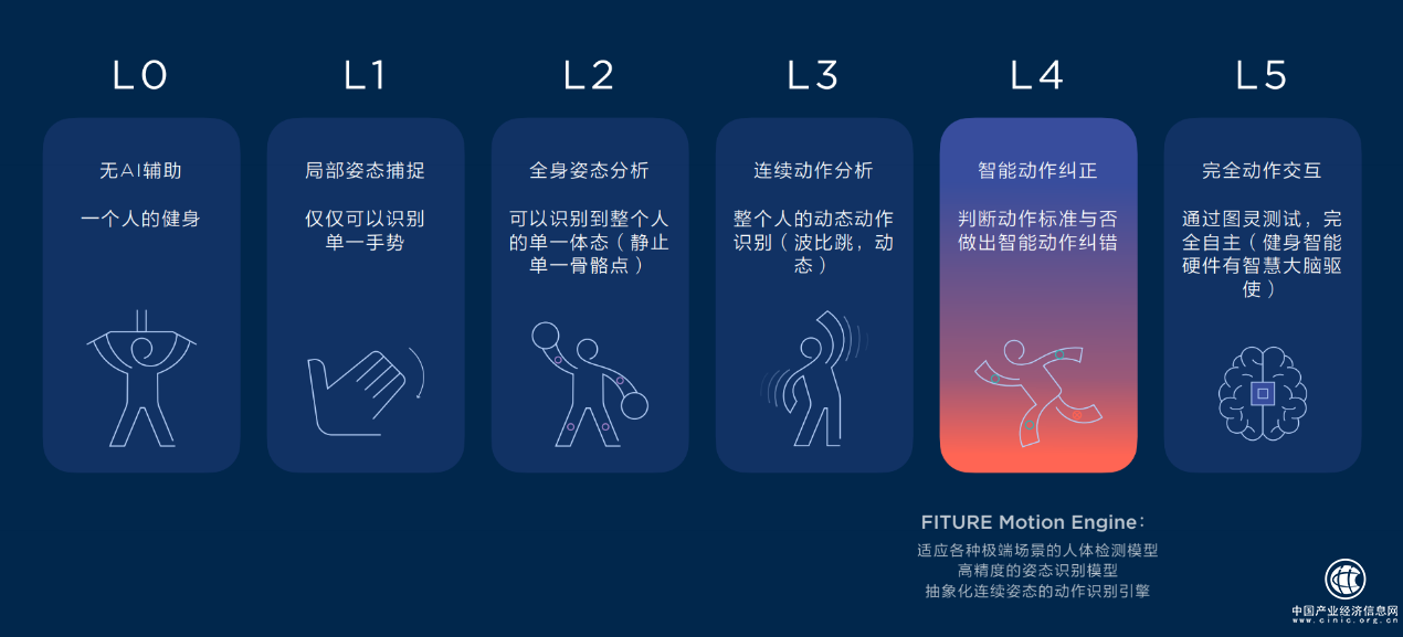 在技术板块,FITURE自主研发的FITURE Motion Engine™智能运动追踪系统已达到了智能健身的L4等级,反馈时延在300-400毫秒,能实现动作捕捉、实时纠错、数据分析等功能,并通过OTA的形式不断迭代升级。与此同时,FITURE还通过不断积累的用户数据不断将健身内容库与AI系统进行打通,为用户呈现千人千面的智能健身体验,最终目标是达到具备完全自主动作交互的智能健身L5等级。