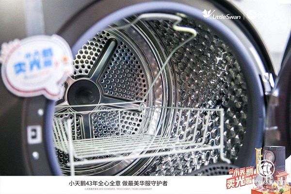 在干衣方面,小天鹅洗烘套装中的烘干机搭载热泵低温烘干技术,可让衣物在42℃的低温环境中快速烘干,即便是棉麻、丝绸、羊毛等高端面料也可以放心烘干。从此,即使是连续数天下雨,也能穿上温暖、干爽的衣物。