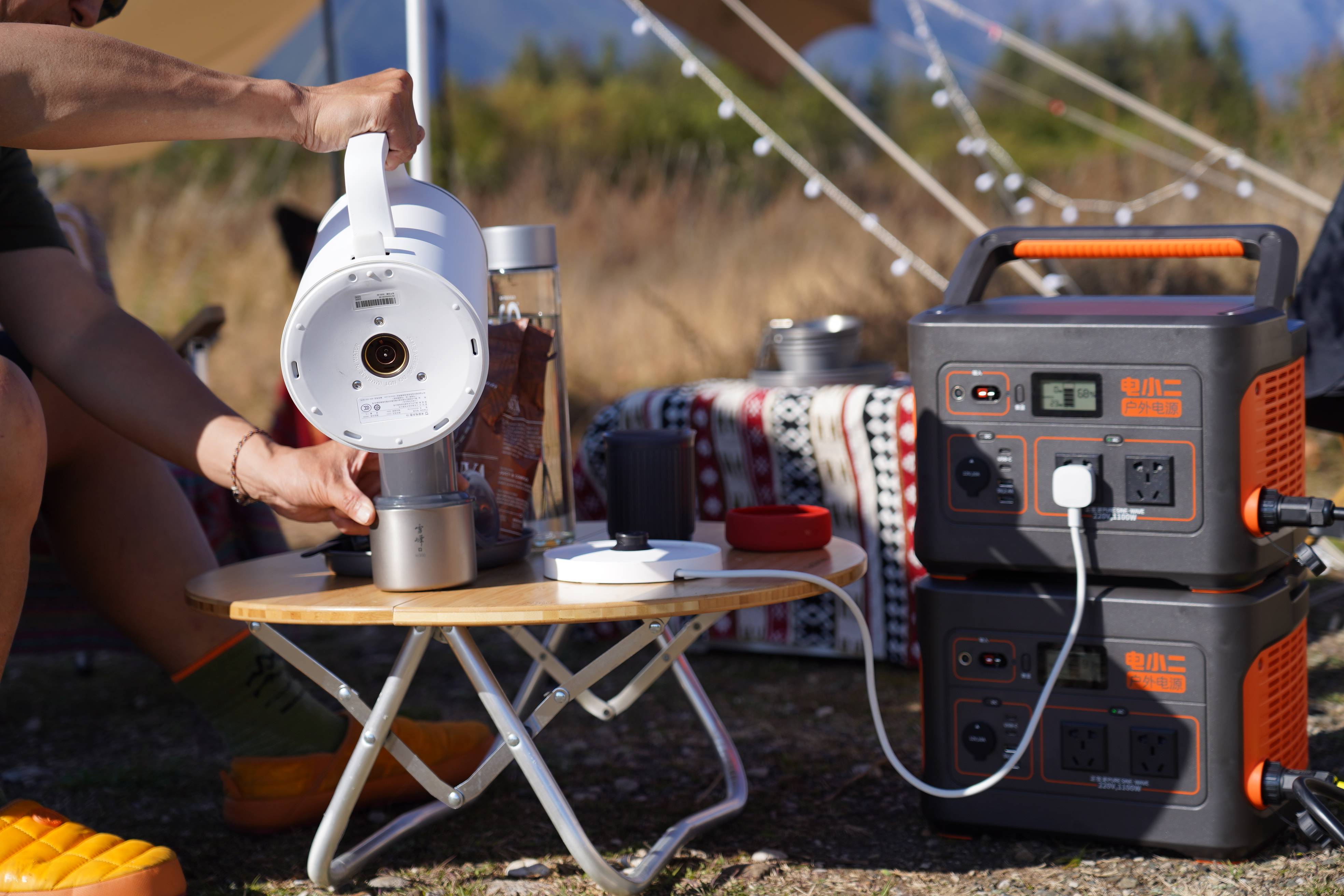 有了电小二户外电源的电力支持,在旷野的行走营地,行走的成员们可以毫无后顾之忧,安心享受当下、与自己、与他人、以及与自然和谐共处。用电水壶泡一杯茶、冲一杯咖啡舒缓心情;也可在行走客厅插上电吉他,来一场小型音乐会;在行走的星空营地,看一场露天的电影。