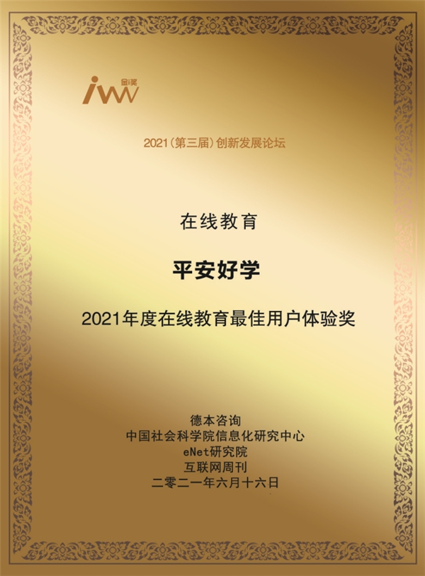 教育关乎人的成长,它不仅是成绩的提高,更是知识的获取,能力的培养,情感的关怀和成长的陪伴。此次荣获“2021年度在线教育最佳用户体验奖”,既是对平安好学创新实力的再一次肯定,更是对教育行业未来发展的高度期许。