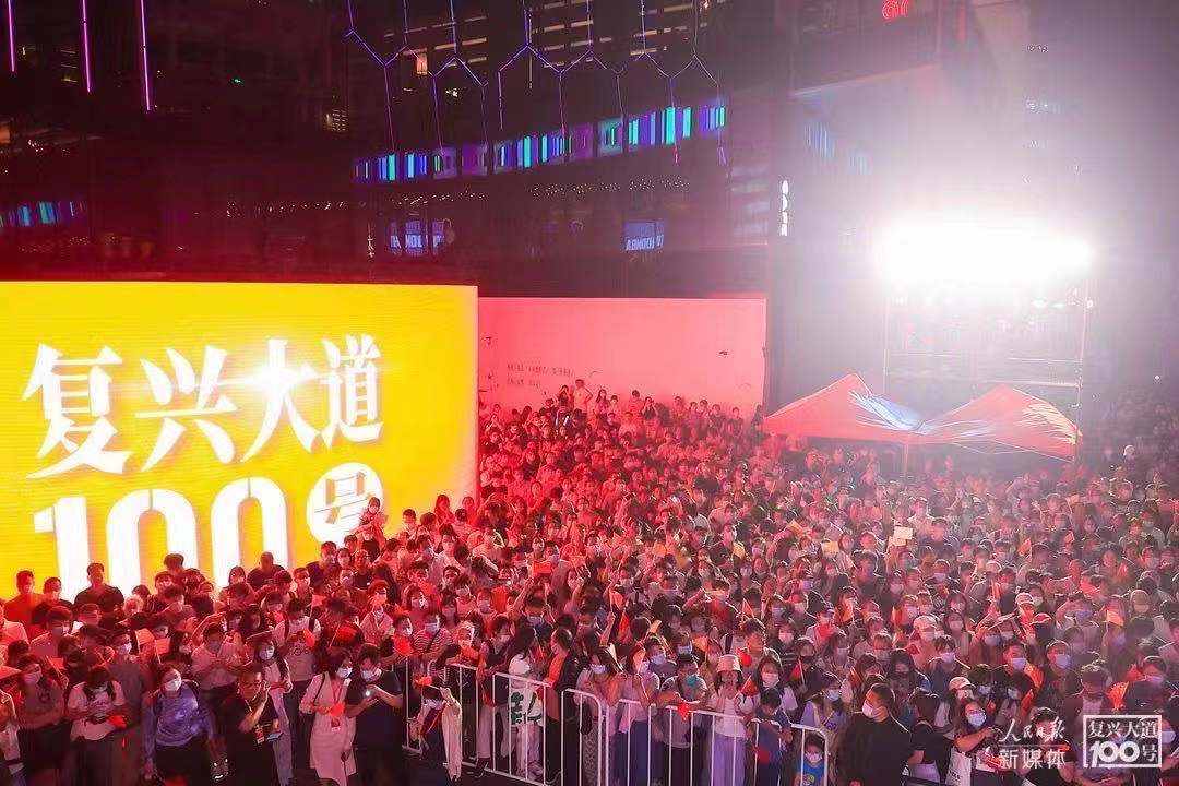 为庆祝中国共产党成立100周年,由人民日报社新媒体中心精心打造的“复兴大道100号”创意体验馆于6月22日至7月1日落地北京三里屯。 该馆以“百年风华,青春中国”为主题,以中国共产党100年来带领中国人民谋幸福、谋复兴的重大历程为主线,通过生活化视角、年轻态的表达,以场景化、沉浸式体验展现中国共产党始终坚持为人民服务的初心和使命,与观众一起重温历史、致敬百年。6月25日,聚焦1921年中共一大召开前后建党历程的影片《1921》也以特别的方式加入快闪体验,主创亮相活动现场,演绎片中情景,回顾百年初心。