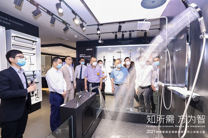 2021年6月25日,箭牌家居全球体验研究中心首次对外开放。佛山市市场监督管理局党组成员、总工程师任伟青,威凯检测技术有限公司日电事业部总经理邢军,国家陶瓷及水暖卫浴产品质量监督检验中心主任区卓琨、箭牌家居集团董事长、总经理谢岳荣,箭牌家居集团董事、副总经理谢炜,箭牌家居集团副总经理严邦平、箭牌家居集团副总经理卢金辉等企业高层悉数出席,在佛山卫浴协会秘书长刘文贵、燕浴圈创始人李天燕以及卫浴头条网等行业主流媒体的共同见证下,这个4000多方的家居体验中心终于揭开了其神秘面纱。