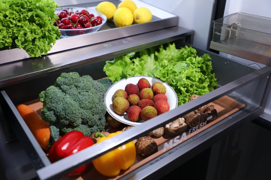 不过光好看可不够。上文也说了,黄圣依家口味挑剔,新一代厨房过得了这个难关吗?事实证明,卡萨帝是实打实的“十项全能”,冰箱“MSA控氧保鲜‧神仙盒”可延长食材保鲜期,荔枝放进去7天依然新鲜,最能满足婆婆这个“新鲜控”的要求。
