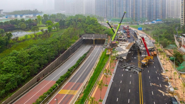 2021年4月28日清晨,经过100多名工人10个小时的通宵施工,三环线梅溪湖隧道南出入口长约40米、重约100吨的隧道光过渡段网架完成拆除,一项瞄准市民百姓“急难愁盼”事项精准发力排忧的噪音整治工程,全面启动施工。