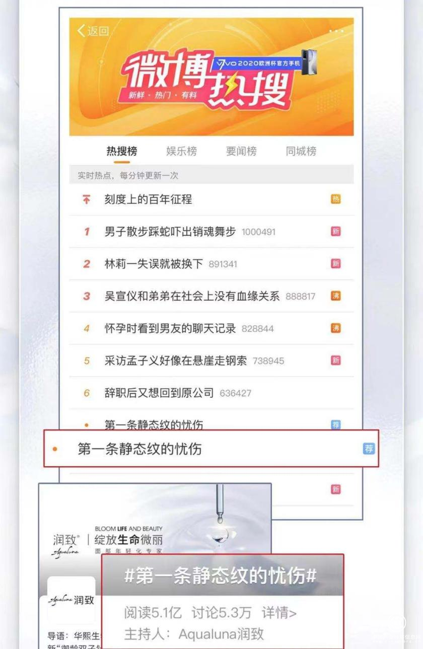 针对皱纹中更为顽固的静态纹,润致在微博发起了#第一条静态纹的忧伤#讨论话题,并且由多领域的达人们带头喊出态度宣言,引领大众关注自己的面部“纹”题。而当达人的影响力逐渐扩散时,品牌方又适时地邀请了医美达人张沫凡前往品牌大本营华熙生物大楼探访,借助张沫凡的视频讲解,令大众了解到静态纹是可以祛除的,并且展示了华熙生物强大的科技实力。