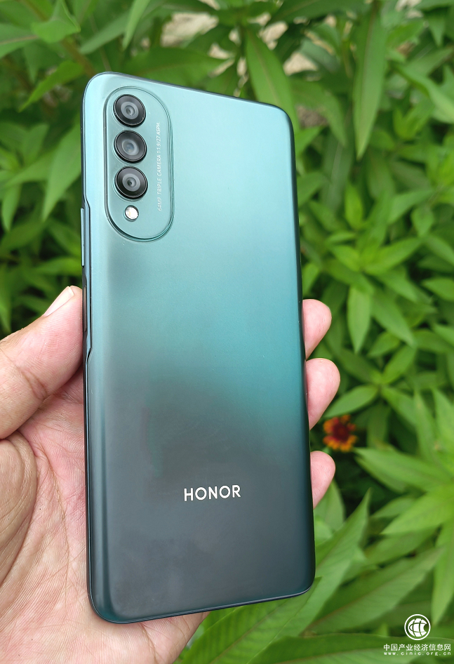 荣耀X20 SE在外形设计层面,依然主攻年轻潮流,四大配色分别为幻夜黑、蓝水翡翠、钛空银、樱粉金,入手测评的这款是蓝水翡翠,虽说是蓝水,但其实还是翡翠般的幽绿色调,玻璃的机身质地,有着波光粼粼的通透感。加以高压注塑的3D工艺,摸在手里的质感和颜值不相上下,温润又细腻,带着一丝磨砂感,可以避免指纹手汗留下印记。