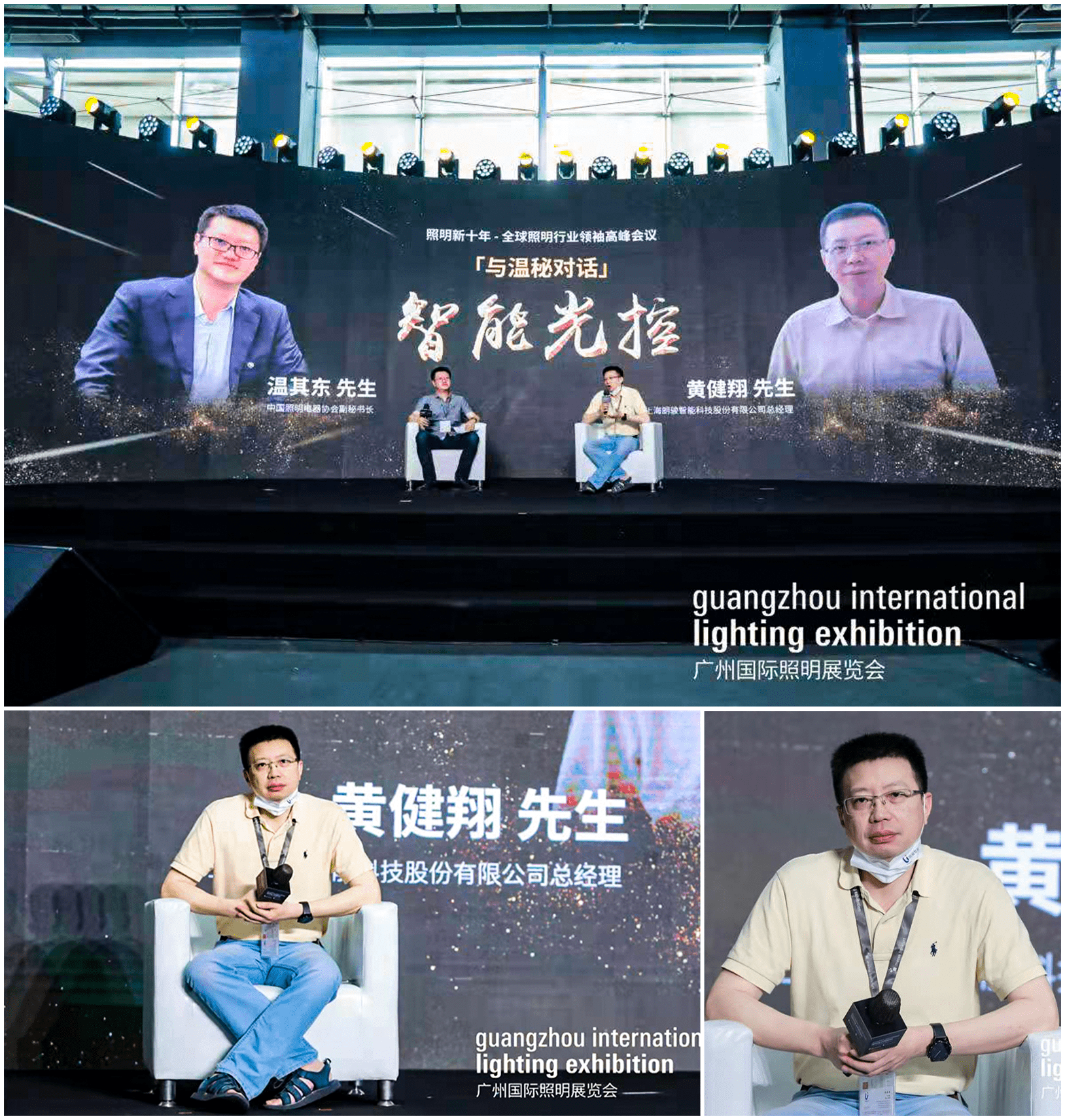 展会期间,朗骏智能总经理黄健翔先生还出席了同期举办的主论坛《照明新十年——全球照明行业领袖高峰会议》之“「与温秘对话」突围之道—携手、破局、共赢”环节,就“智能光控”这个主题现场接受了中国照明电器协会副秘书长温其东先生的对话专访。