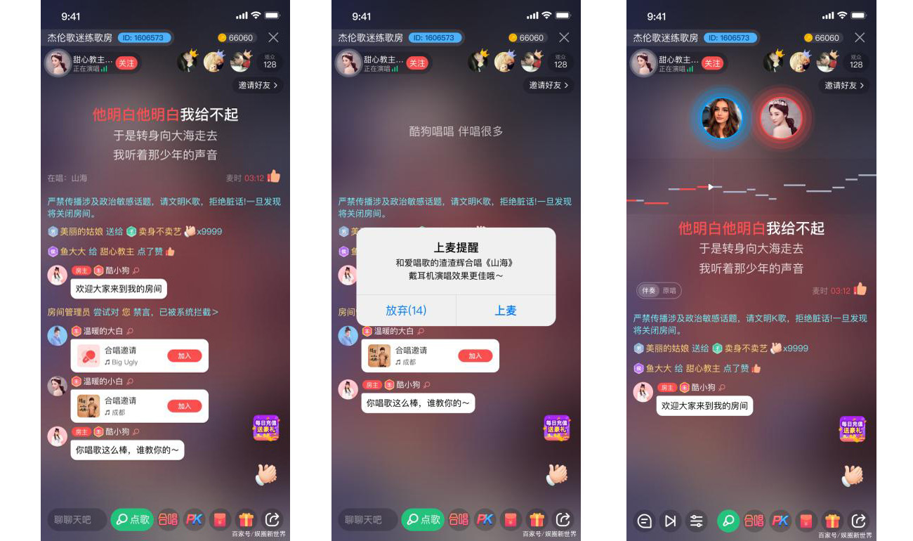 酷狗唱唱在今年5月份上线的新功能“K房合唱”,使用的便是即构科技的实时合唱方案,在酷狗唱唱的“K房合唱”的场景中,不仅观众可以实时听到合唱者的声音,麦上的合唱者可以彼此听到对方的声音并实现线上交流,100%还原了线下KTV的互动体验,酷狗唱唱也凭借还原、新颖的玩法一举赢得唱歌爱好者的喜爱。