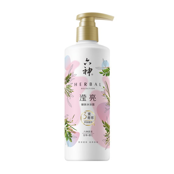 六神滢亮菁萃沐浴露:甘草调和 协同提亮