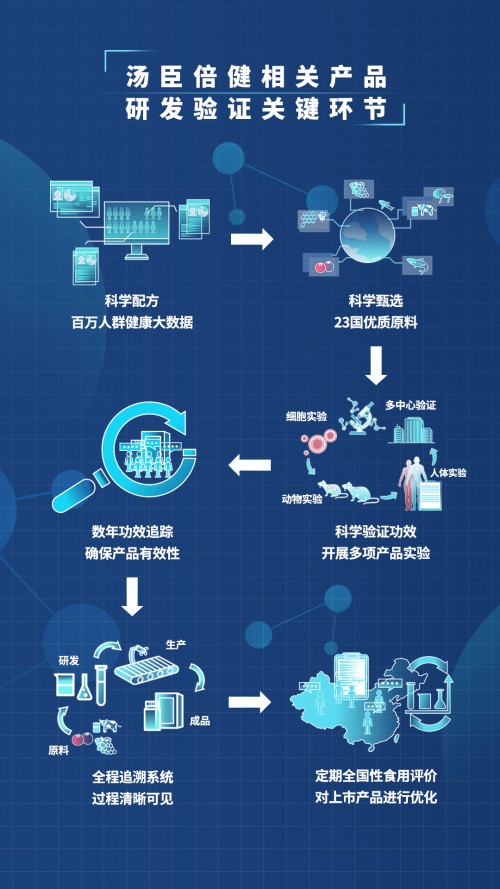 作为一家负责任的企业,汤臣倍健始终以科学、理性的目光,遵循可视可验证的研发原则,提供可量化、有科学根据的参数和选择标准。